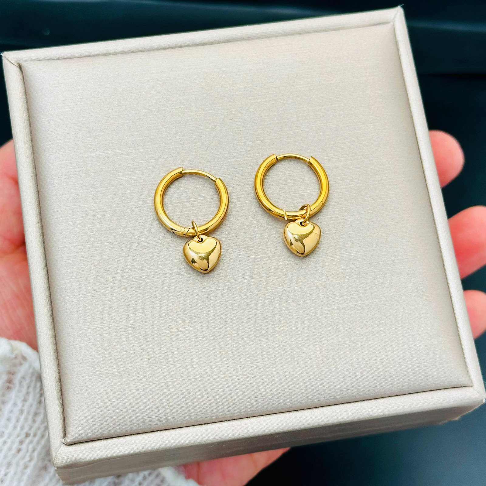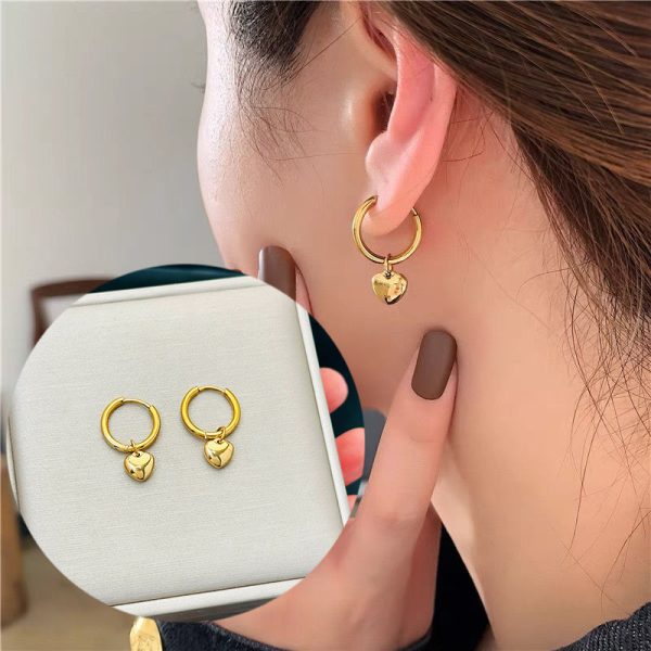 Heart Hoop Earrings Minimalist Style Stainless Steel Earrings