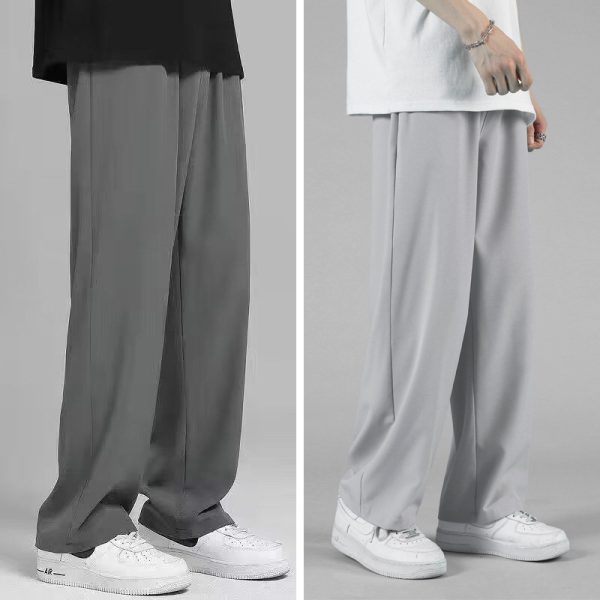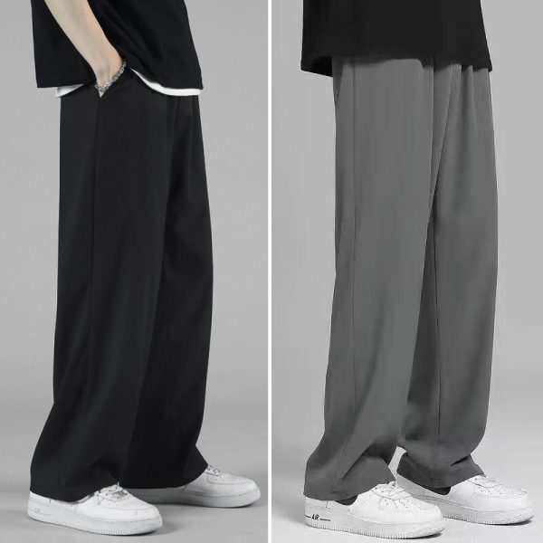 Men’s Casual Wide Leg Pants Ice Silk Trousers