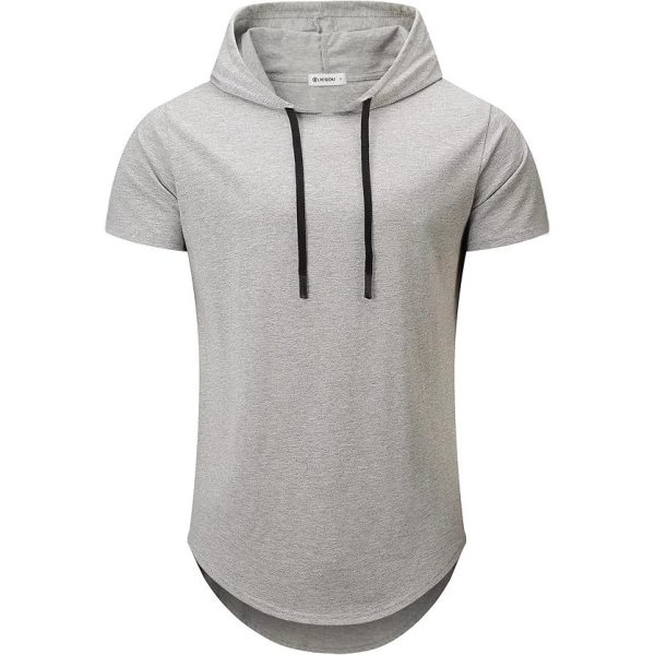 Men’s Short Sleeve Hoodie T-Shirt Solid Color Slim Fit Casual Sports Pullover